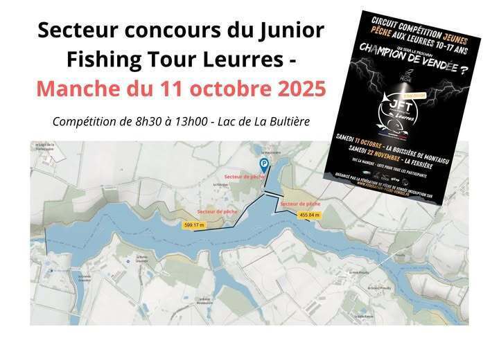Ce seront 40 jeunes compétiteurs qui s'affronteront en pêche aux leurres du bord sur la rive côté la Boissière de Montaigu et sur une partie du plan d'eau de la Maurosière. Merci à vous de privilégier les autres secteurs du lac pour pratiquer la pêche sur cette matinée.